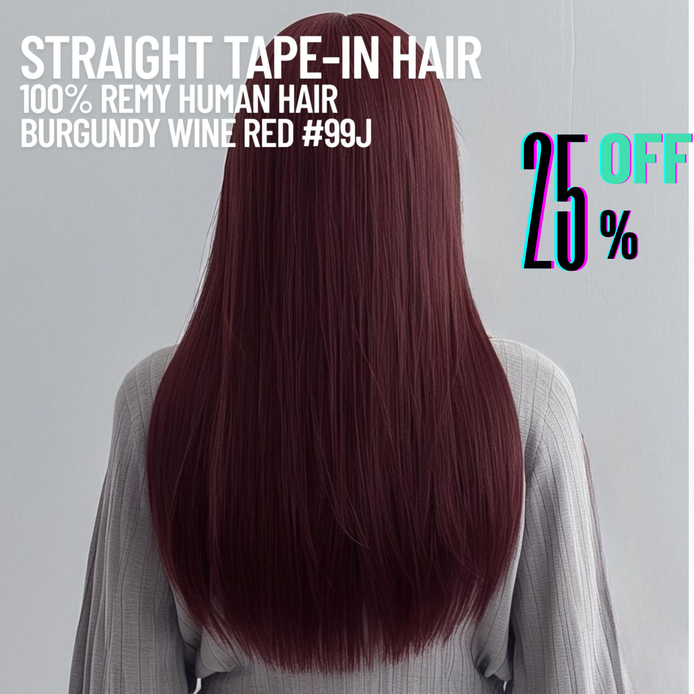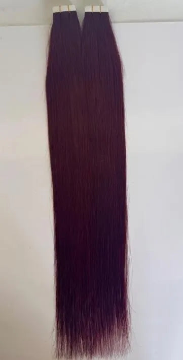 Burgundy Wine Red #99J Tape-In Hair Extensions – 100% Remy Human Hair, soft, sleek, and easy to install. Our #99j Straight Tape-In extensions blend seamlessly with natural hair for a full, voluminous look.