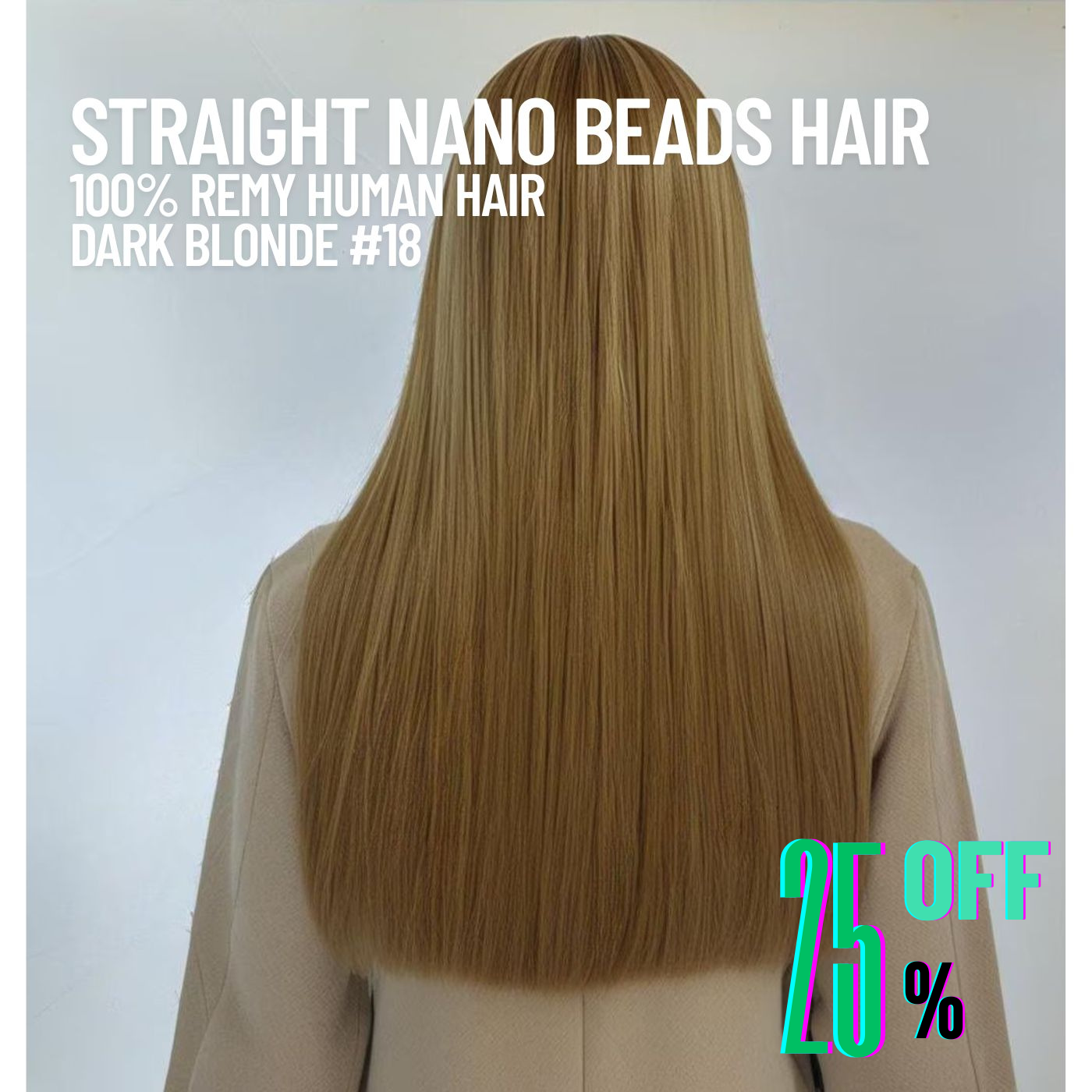 Dark Blonde #18 Nano Beads Hair Extensions – 100% Remy Human Hair