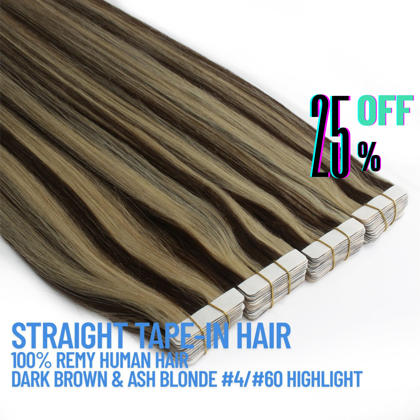 Dark Brown & Ash Blonde #4/#60 Tape-In Hair Extensions – 100% Remy Human Hair | 50g Pack | 10''–30'' | Reusable | Ships from Canada