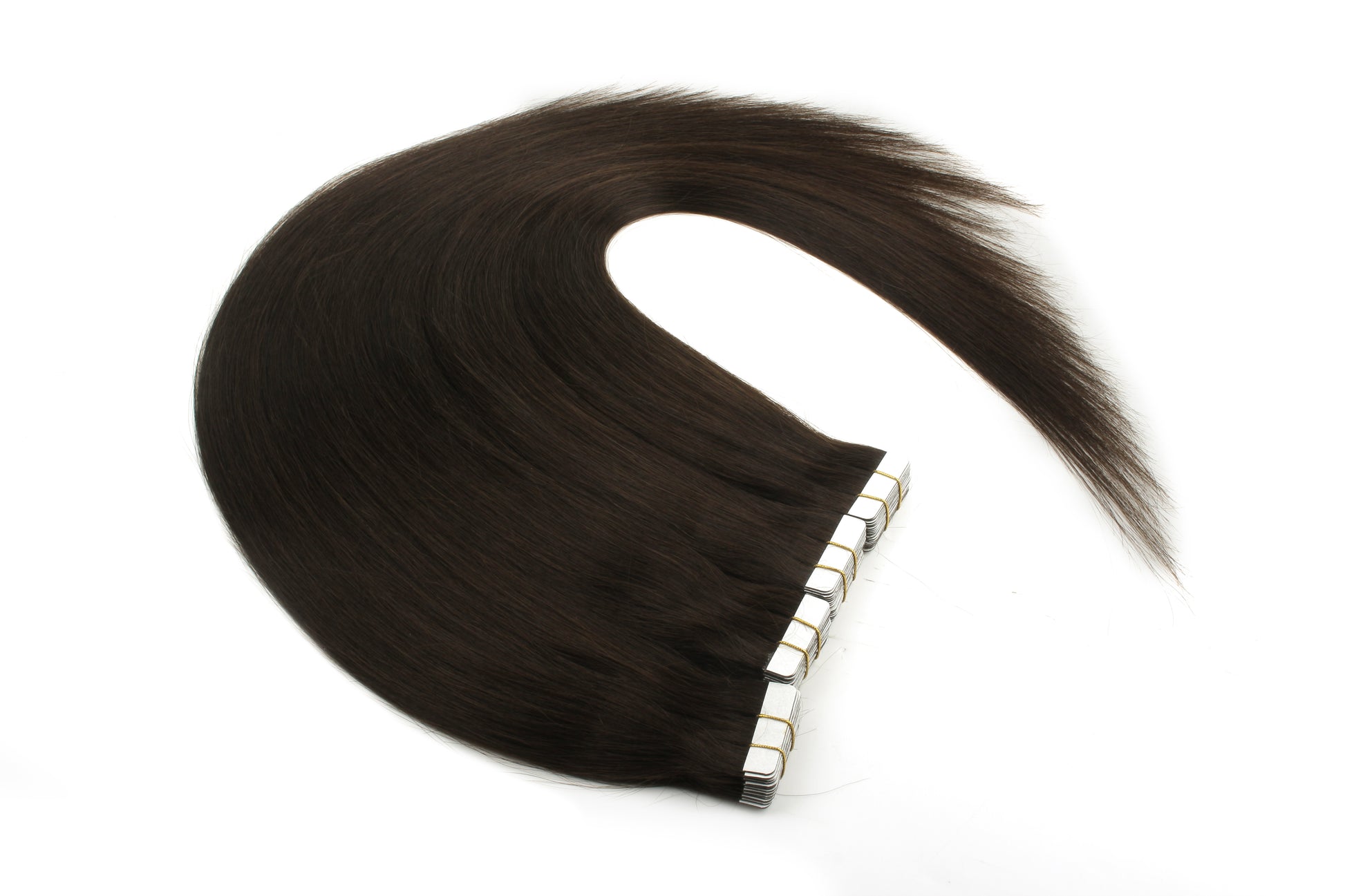 Deep Dark Brown #2 Tape-In Hair Extensions – 100% Remy Human Hair, soft, sleek, and easy to install. Our #2 Straight Tape-In extensions blend seamlessly with natural hair for a full, voluminous look.