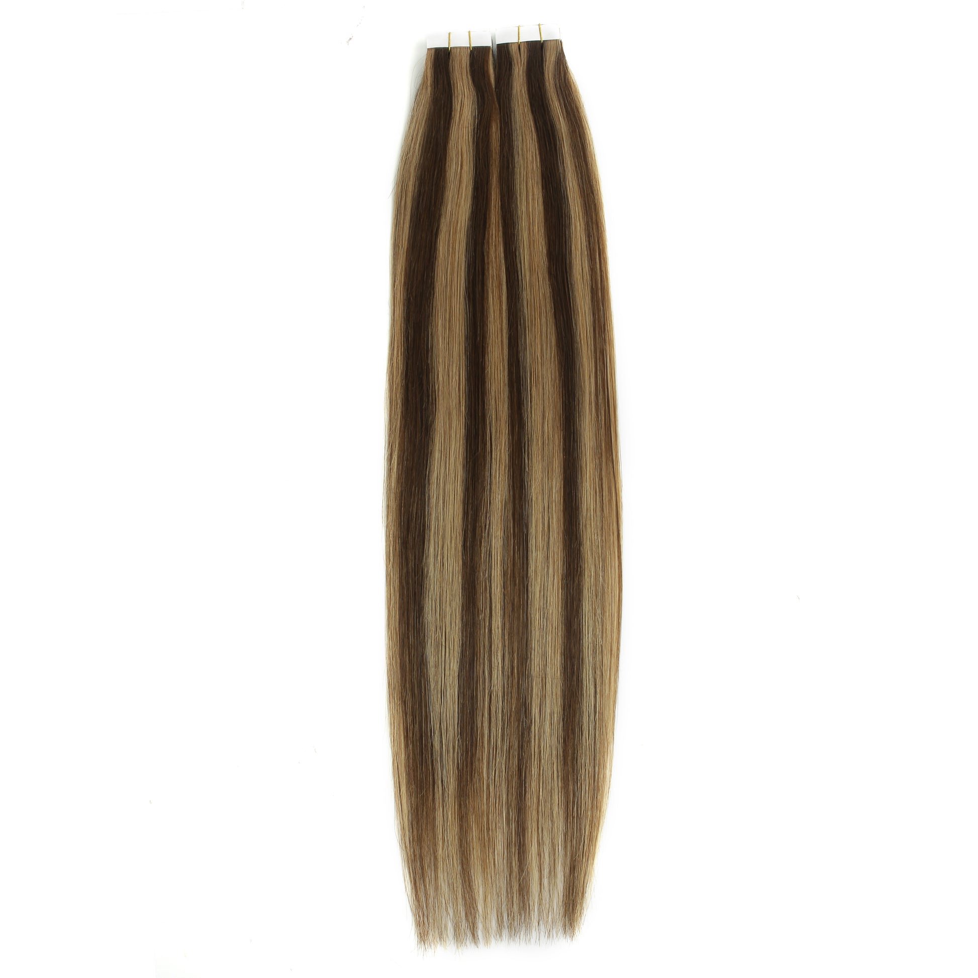 Dark Brown & Honey Blonde #4/#27 Tape-In Hair Extensions – 100% Remy Human Hair | 50g Pack | 10''–30'' | Reusable | Ships from Canada
