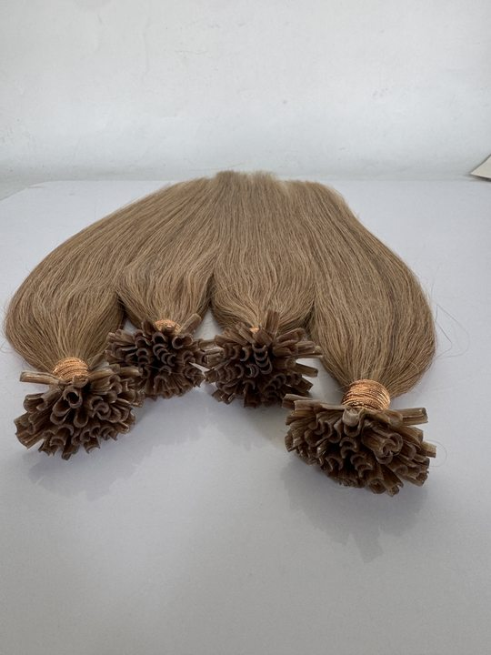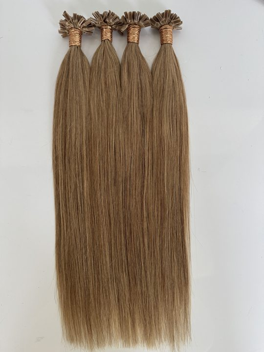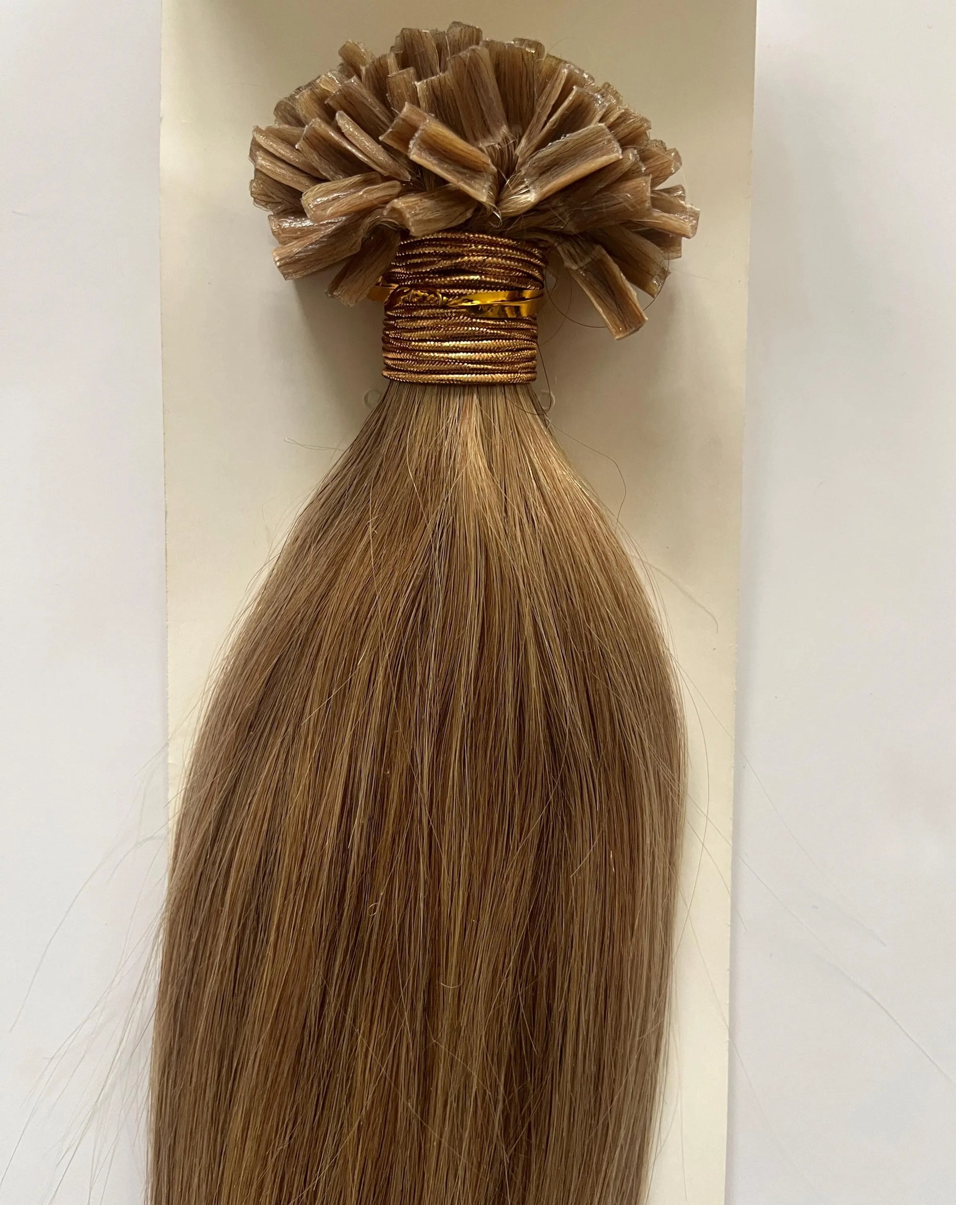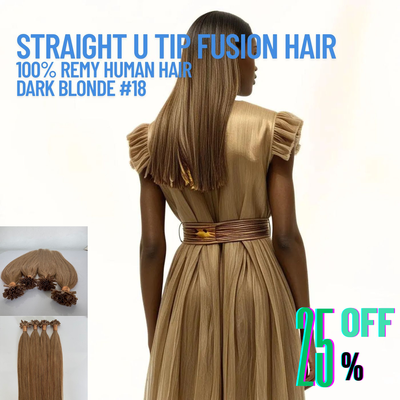 Dark Blonde #18 U Tip Fusion Hair Extensions – 100% Remy Human Hair, soft, sleek, and long-lasting. Our #18 Straight U Tip extensions offer a secure, natural look that's ideal for salon-quality transformations.