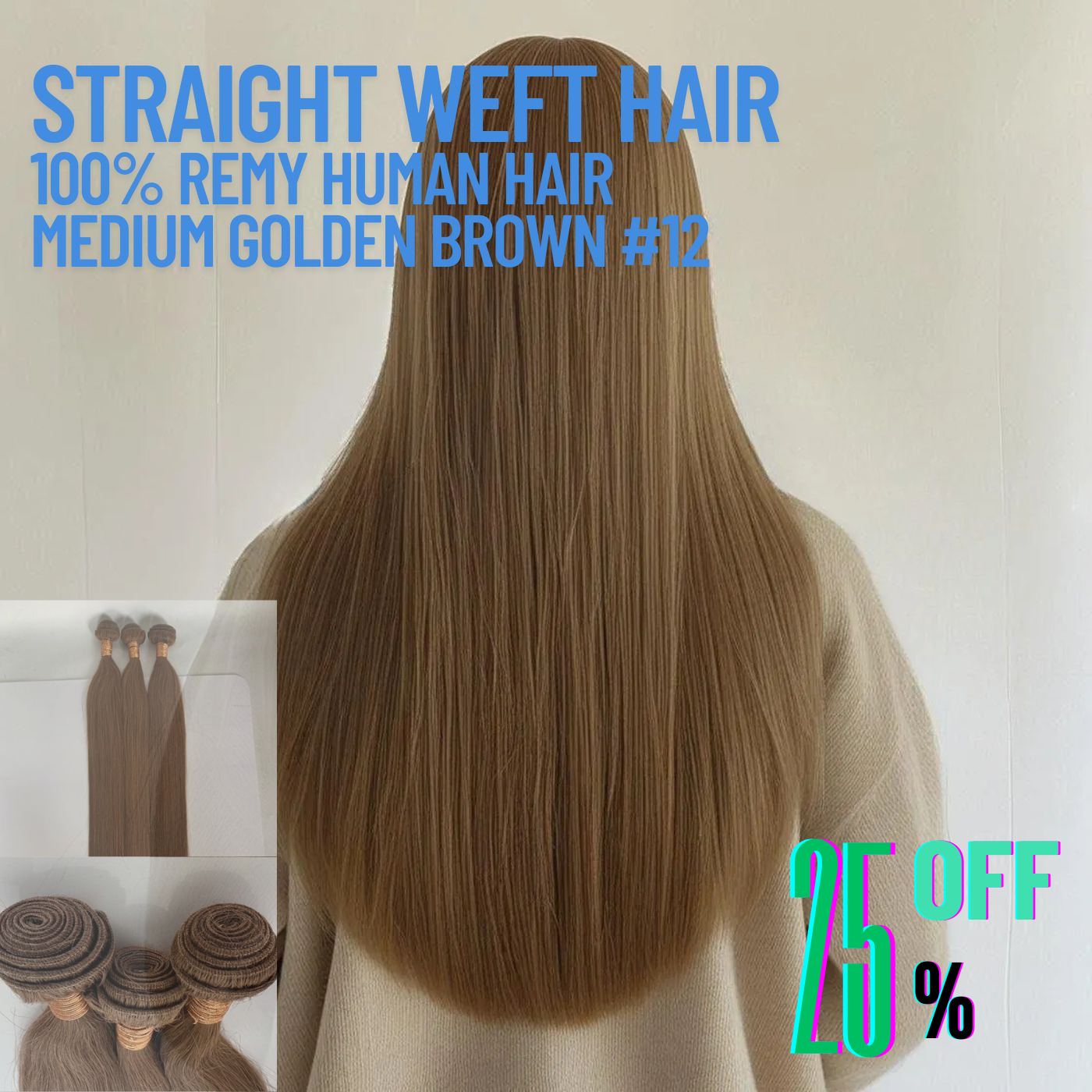 Medium Golden Brown #12 Straight Weft Hair Extensions – 100% Remy Human Hair | 100g Pack | 10''–30'' | Reusable | Ships from Canada