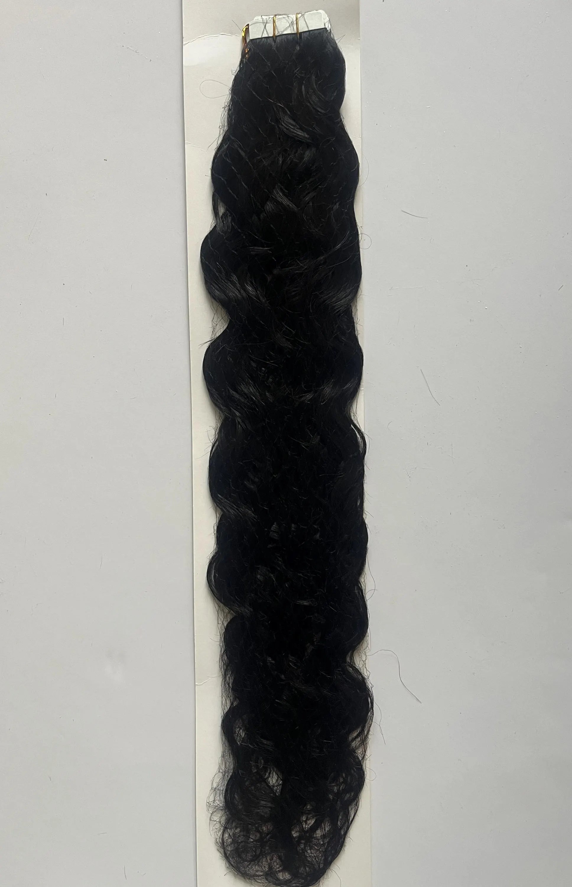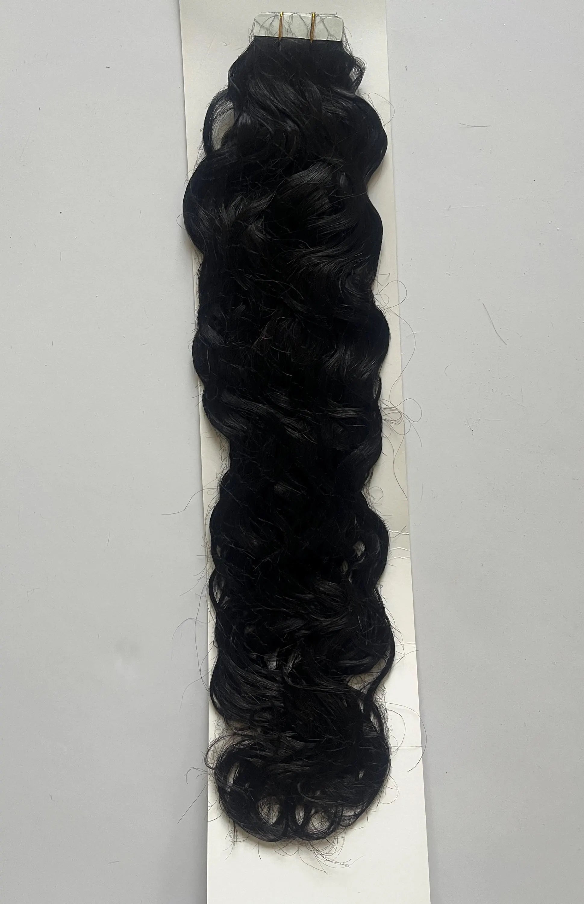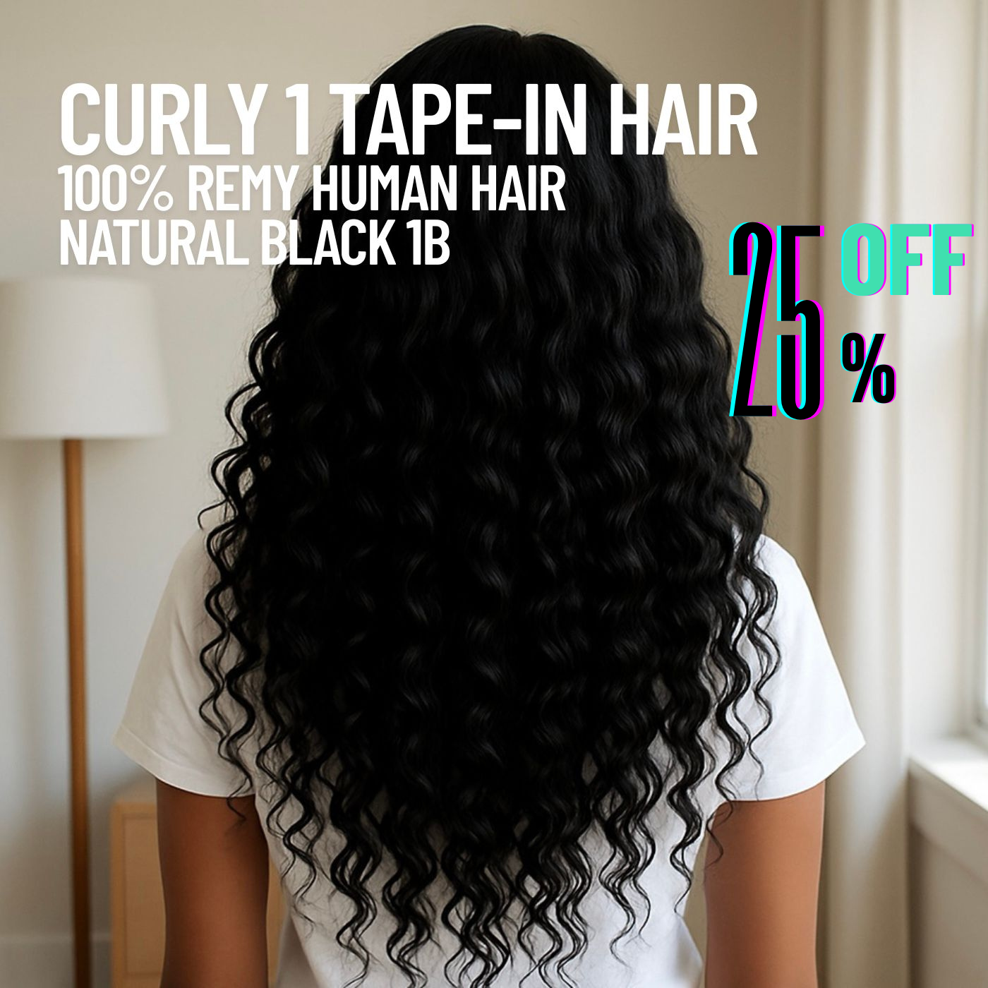 Natural Black #1B Curly 1 Tape-In Hair Extensions – 100% Remy Human Hair | 50g Pack | 10''–30'' | Reusable | Ships from Canada