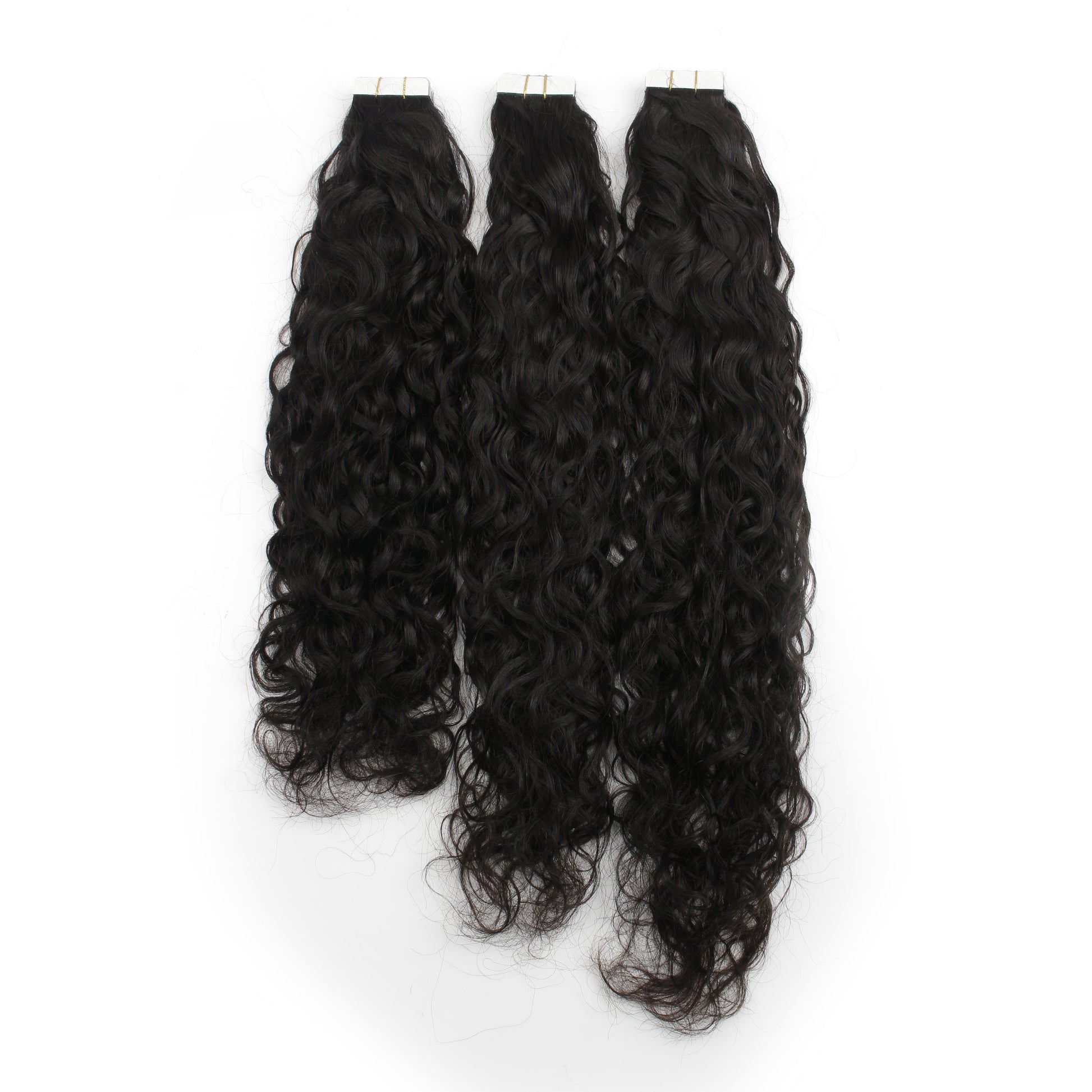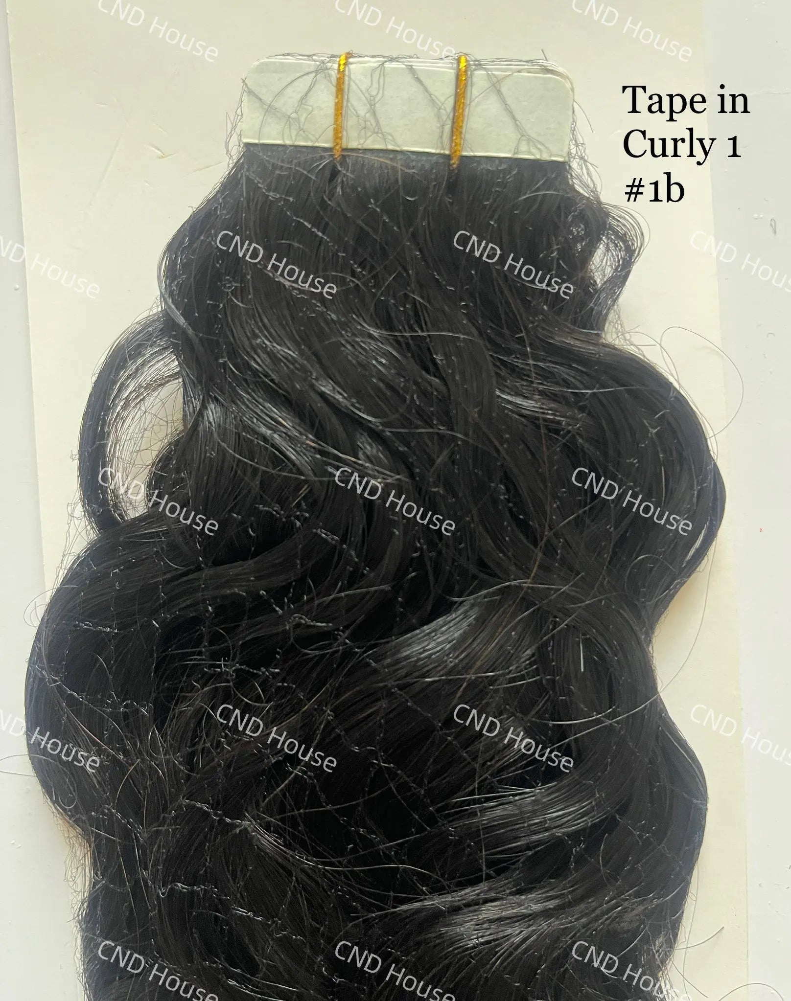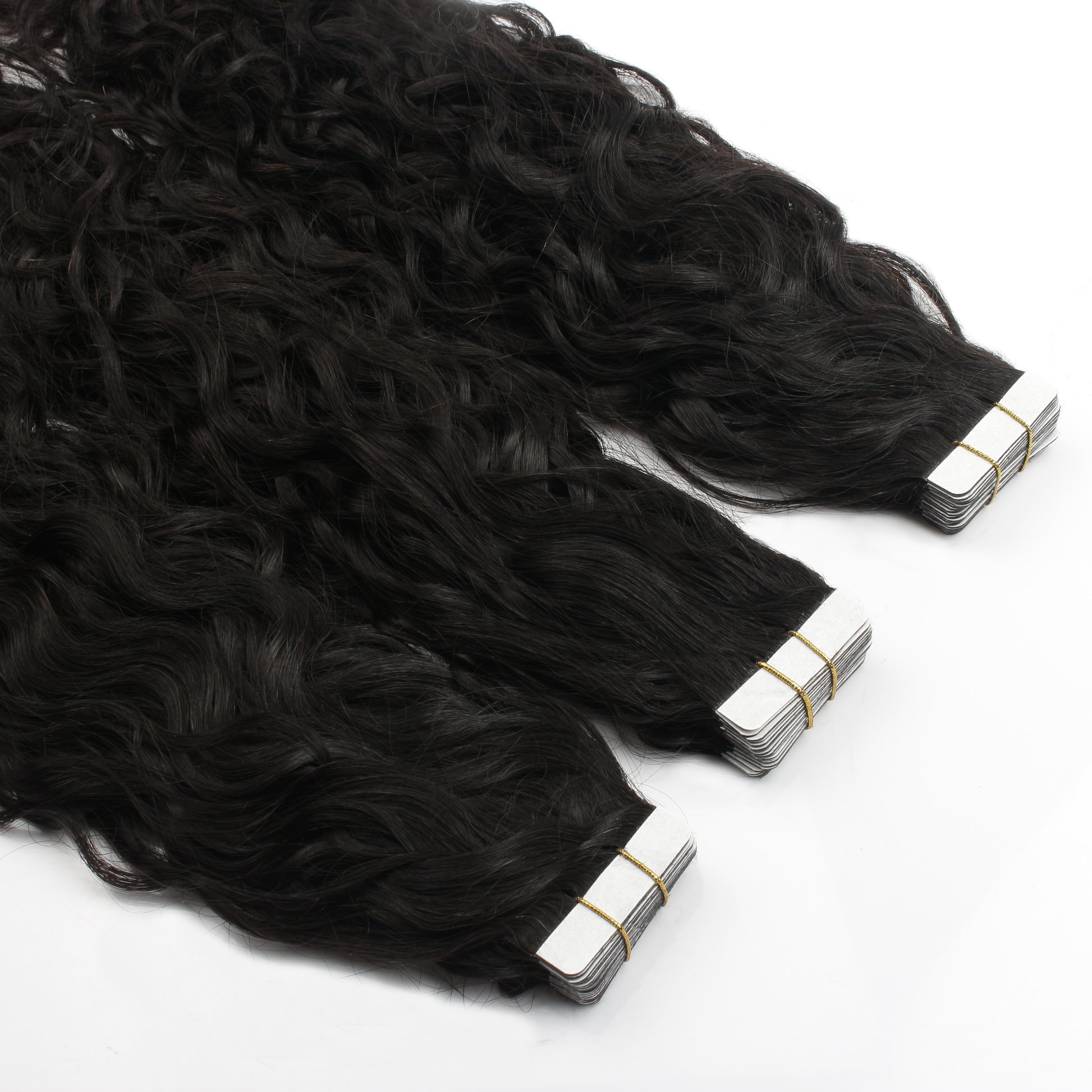 Natural Black #1B Curly 1 Tape-In Hair Extensions – 100% Remy Human Hair | 50g Pack | 10''–30'' | Reusable | Ships from Canada