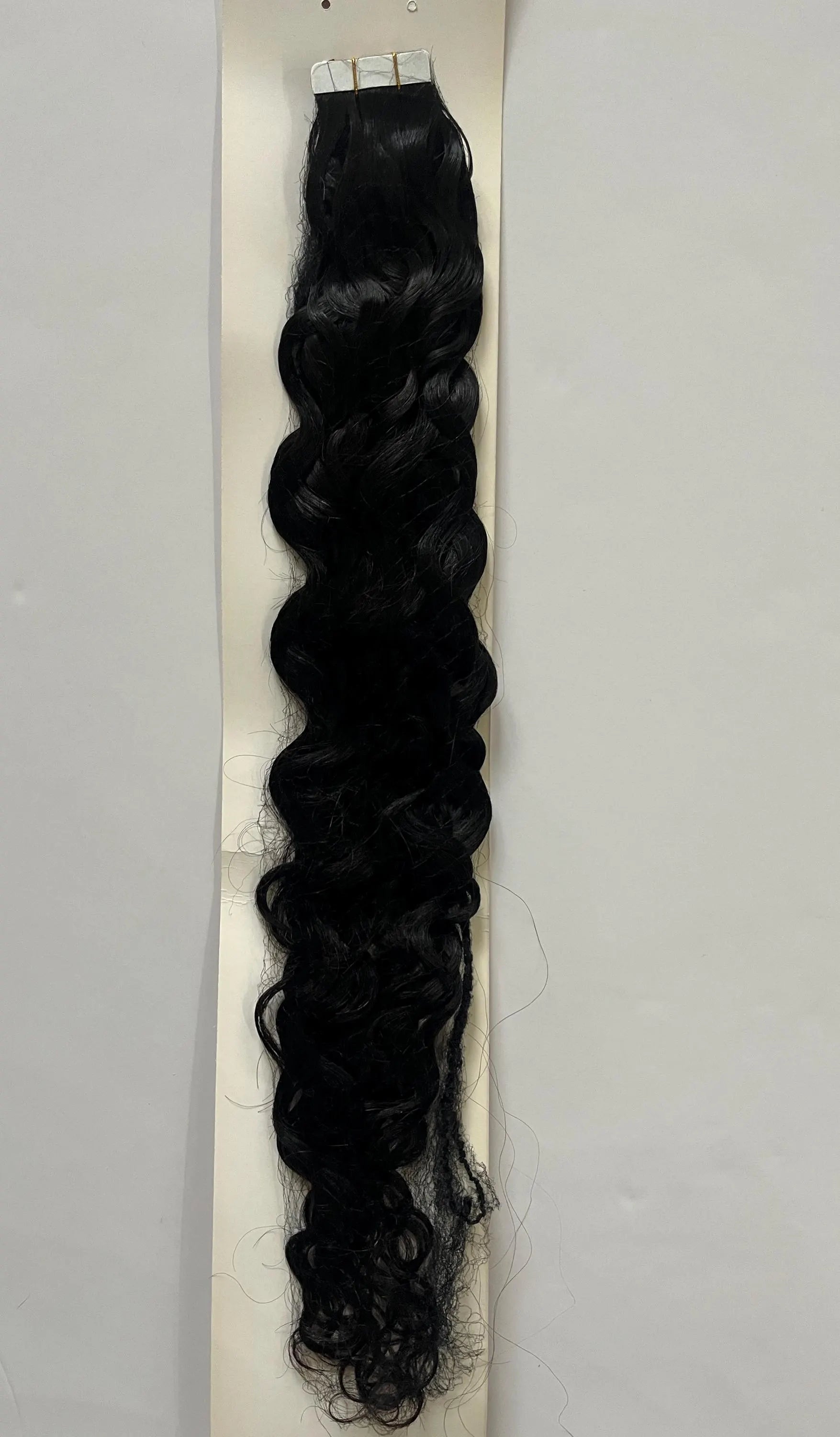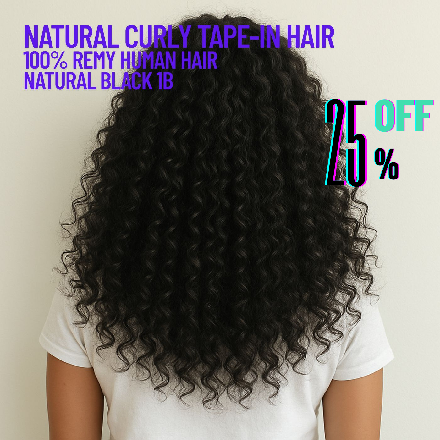 Natural Black #1B Natural Curly Tape-In Hair Extensions – 100% Remy Human Hair | 50g Pack | 10''–30'' | Reusable | Ships from Canada