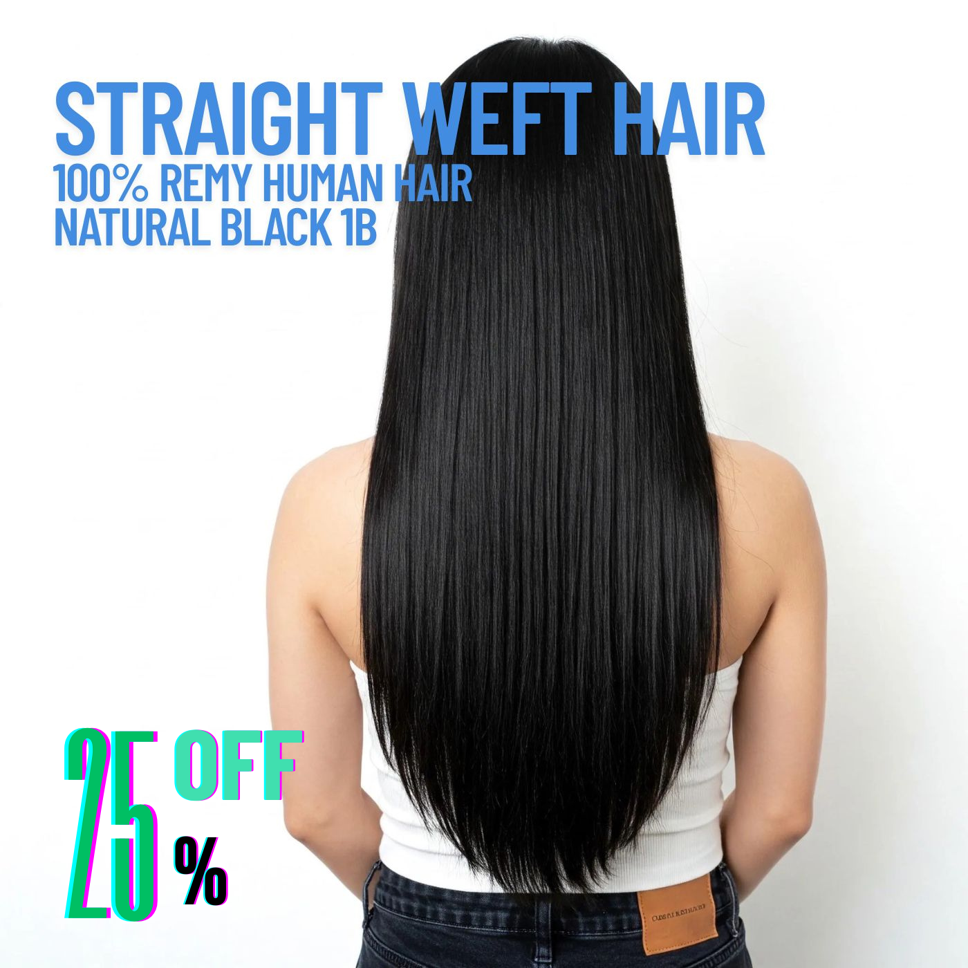 Natural Black #1B Straight Weft Hair Extensions – 100% Remy Human Hair | 100g Pack | 10''–30'' | Reusable | Ships from Canada
