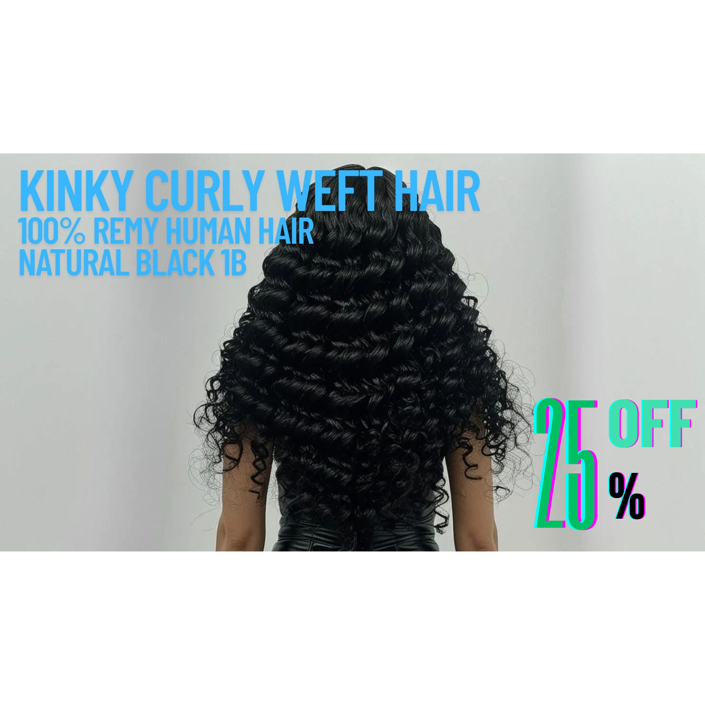 Natural Black #1B Weft Hair Extensions – Kinky Curly | 100% Remy Human Hair | 100g Pack | 10''–30'' | Reusable | Ships from Canada