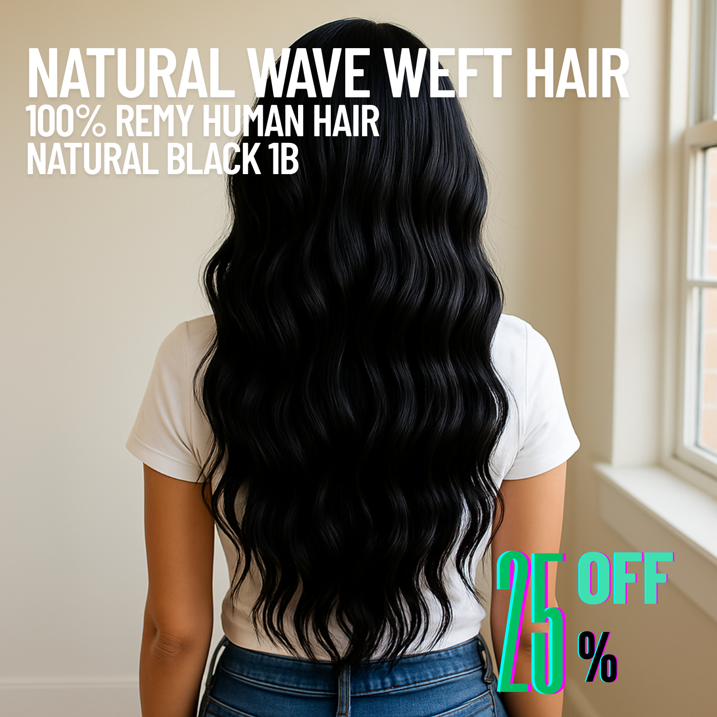 Natural Black #1B Weft Hair Extensions – Natural Wave – 100% Remy Human Hair, soft, bouncy, and full of texture. Our #1B Natural Wave Weft extensions are perfect for sew-in styles, creating effortless volume and movement while blending beautifully with natural hair.