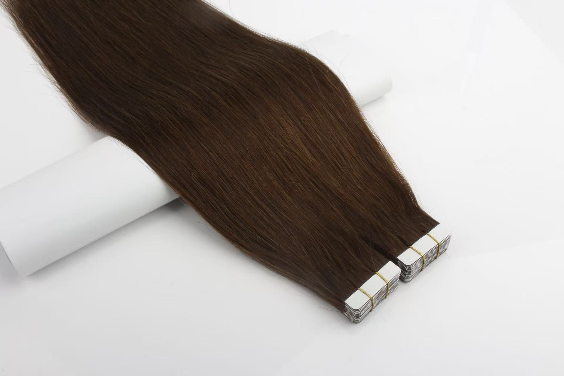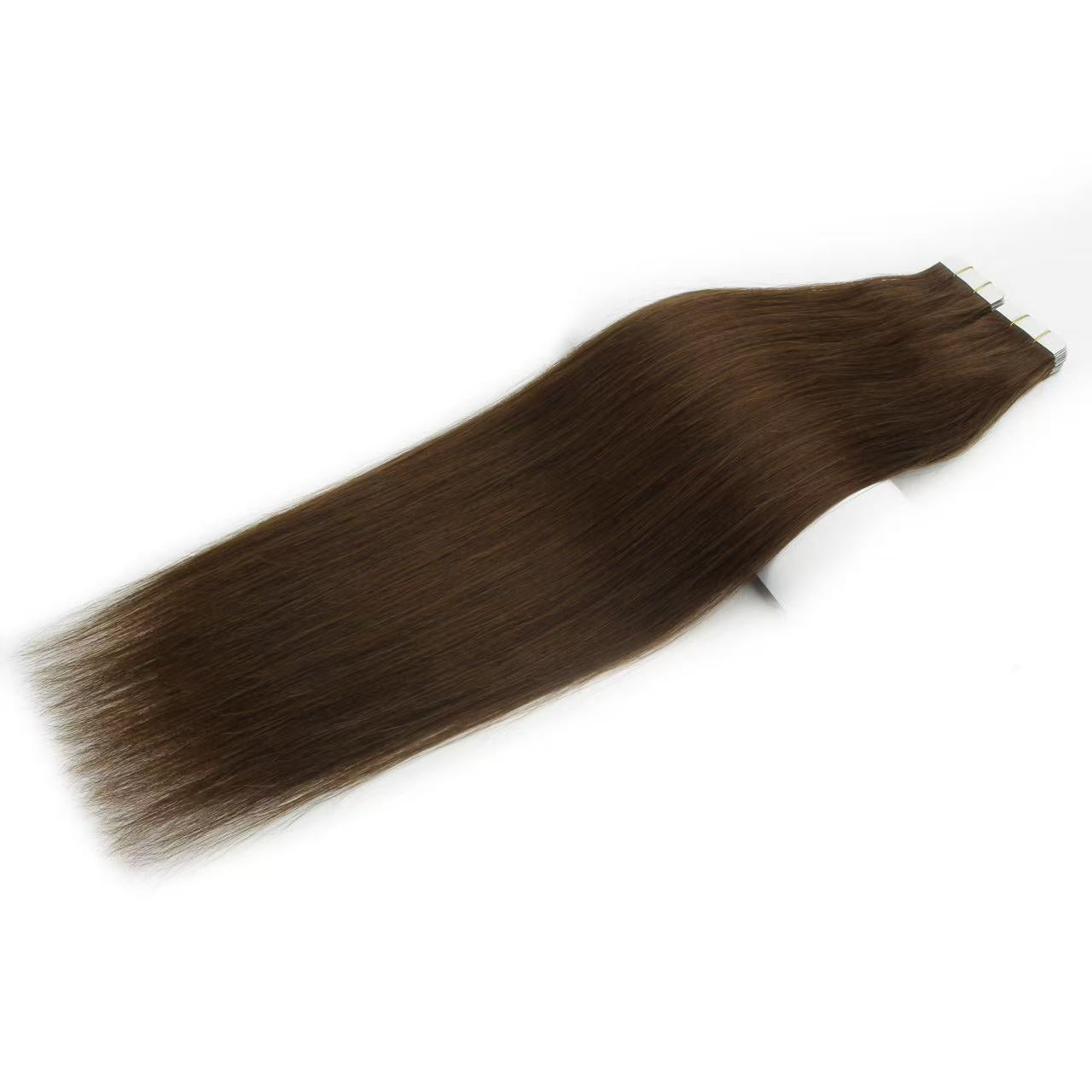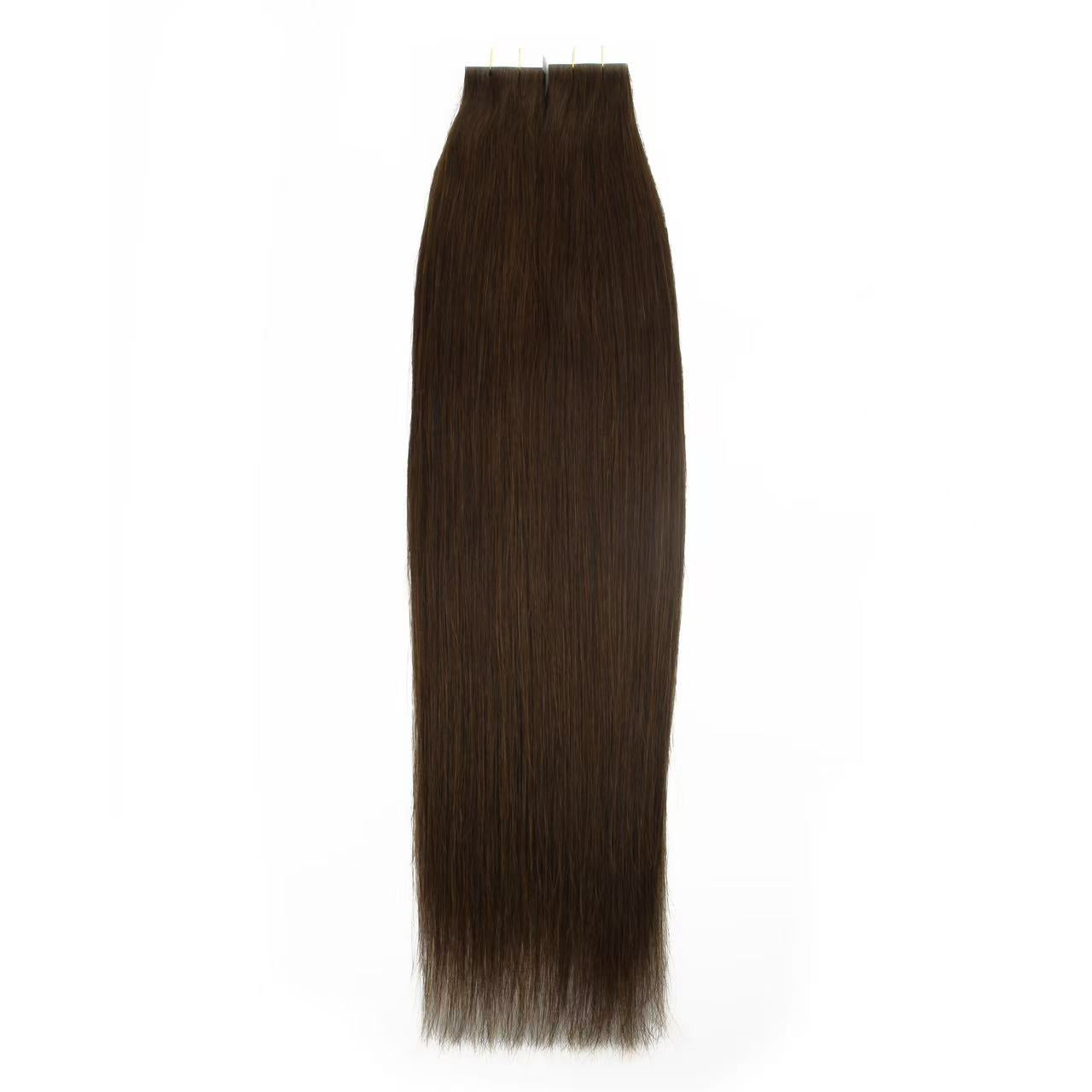 Dark Brown #4 Tape-In Hair Extensions – 100% Remy Human Hair, soft, sleek, and easy to install. Our #4 Straight Tape-In extensions blend seamlessly with natural hair for a full, voluminous look.